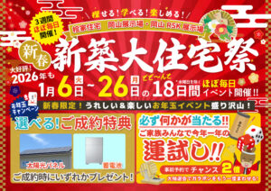 プランや価格をまるっと公開!自分に合った家づくり相談会 日 程 2026年1月24日~2月6日 時 間 10:00~17:00 場 所 岡山RSK展示場(RSKハウジングプラザ内) 岡山展示場(山陽新聞岡山住宅展示場内)