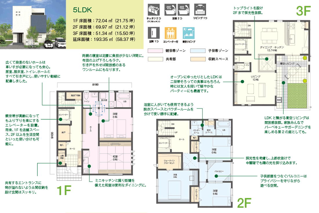プライバシーを守りつつ家事や育児を共有、分担。共働きなどの外出時も安心。